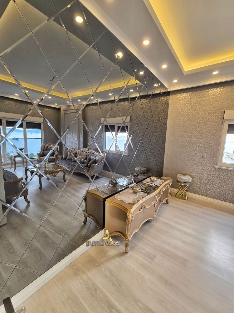 İsterseniz duvar üstüne yapıştırılan baklava aynaları varaklı çerçeve modelleri ile çerçevelendirebilir, daha estetik ve şık bir görüntü kazandırabilirsiniz. Aynı zamanda asma tavan baklava ayna uygulaması kaplama işlerinizde tüm salon, yatak odası ve diğer mekanlara geniş bir yükseklik, ferahlık kazandırabilirsiniz.